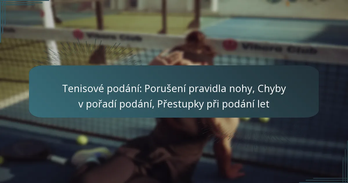 Podávání tenisu zahrnuje několik kritických pravidel, kterých se hráči musí držet, včetně porušení pravidel foot fault, chyb v pořadí podání a přestupků let serve. K porušení pravidla foot fault dochází, když hráč nesprávně umístí nohy během podání, zatímco chyby v pořadí podání vznikají, když se podává mimo pořadí. Dále, let serve, což se stává, když podání zasáhne síť, ale stále dopadne do správného boxu, může vést k přerušením hry. Pochopení těchto přestupků je nezbytné pro udržení integrity zápasu a zajištění fair play.